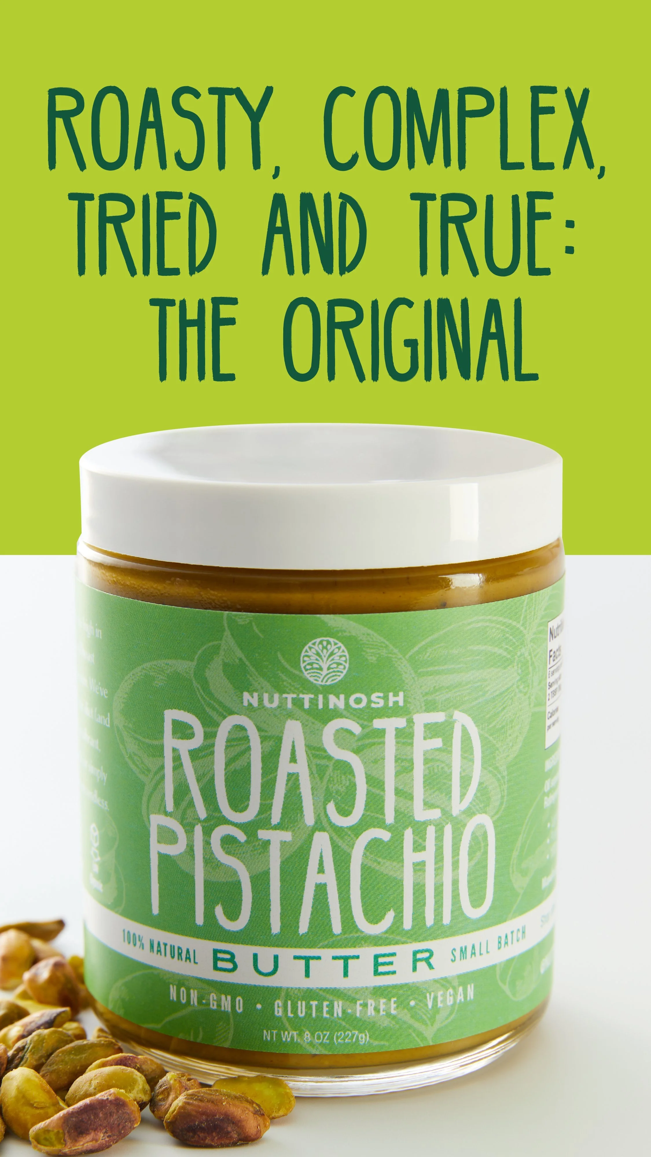 True to the original, our Roasted Pistachio Butter is pure and unaltered. We honor the incredible flavor of the world’s favorite nut by lightly roasting it to enhance its flavor and retain optimal nutritional integrity. This nut butter is a healthier alternative to traditional peanut butter or almond butter. Enjoy it with crackers, bread, cakes, muffins, cookies, and on bagels — or slather it on your next sandwich. This perfect spread is a pantry must-have!